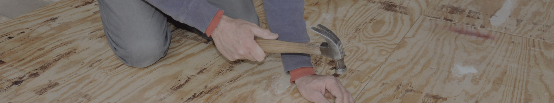 A rough base floor underneath a finished floor with its bottom surface facing a crawlspace.